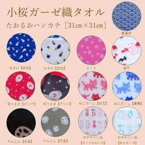 小桜ガーゼ織タオル 今治ふわふわパイルとさわやかガーゼのたおるおハンカチ*小紋柄* 【日本製・綿100%】