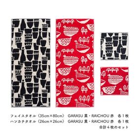 富山もよう×セルダム×吉井タオル【今治タオルブランド認定】フェイスタオル RAICHOU赤