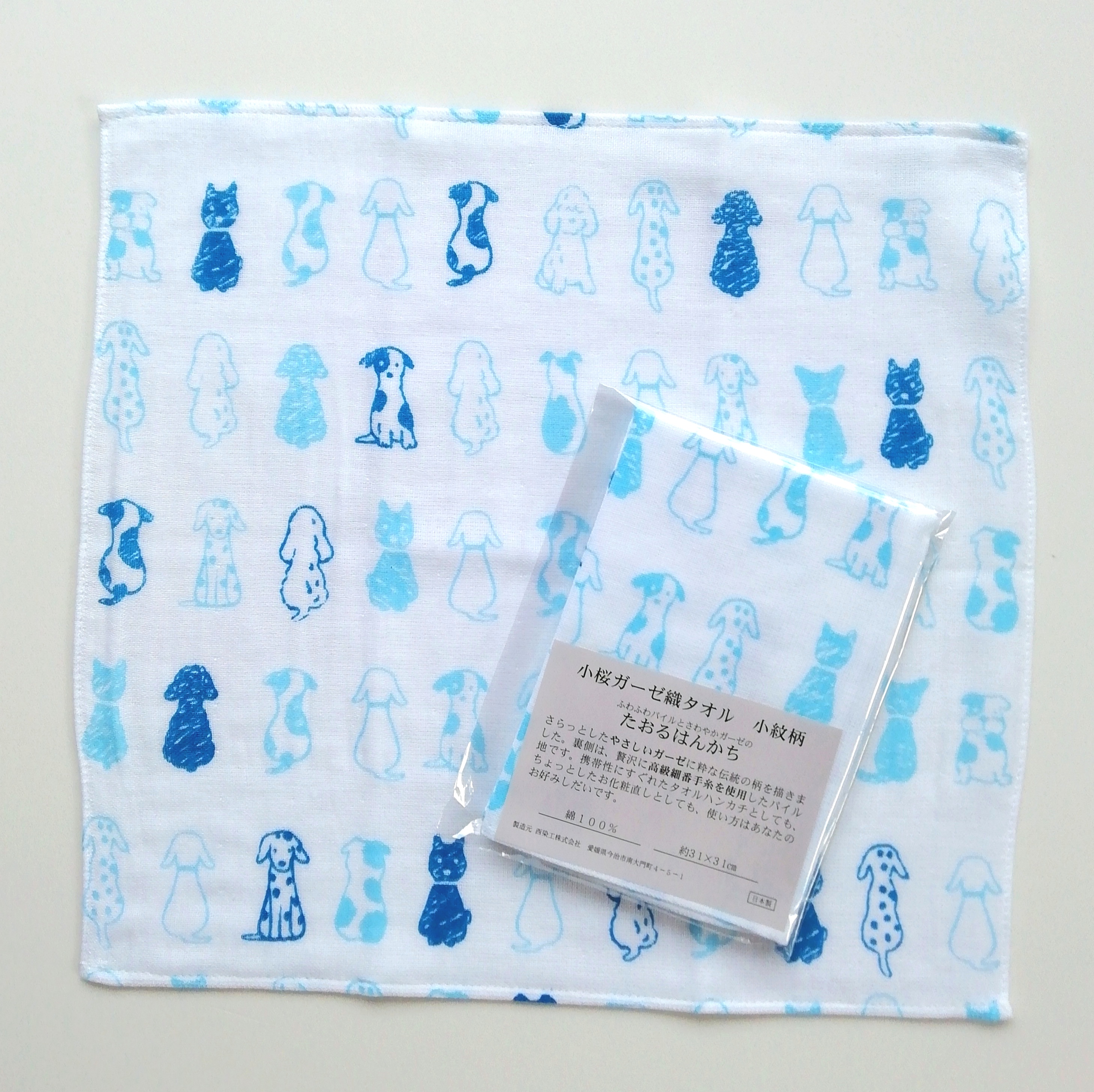 小桜ガーゼ織タオル 今治ふわふわパイルとさわやかガーゼのたおるおハンカチ*小紋柄* 【日本製・綿100%】