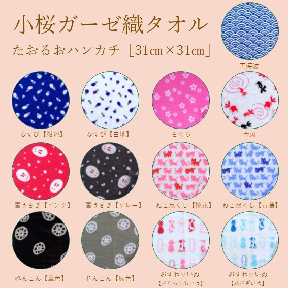 小桜ガーゼ織タオル 今治ふわふわパイルとさわやかガーゼのたおるおハンカチ*小紋柄* 【日本製・綿100%】